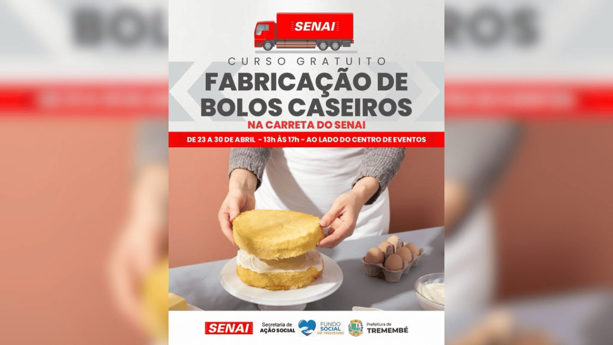 Curso de bolos caseiros em Tremembé abre inscrições com vagas limitadas e foco em geração de renda abril 13, 2026