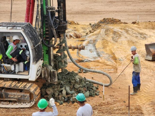 A empresa responsável pela construção da Base de Bombeiros de Tremembé está fazendo os trabalhos de perfuração para a fundação do prédio.