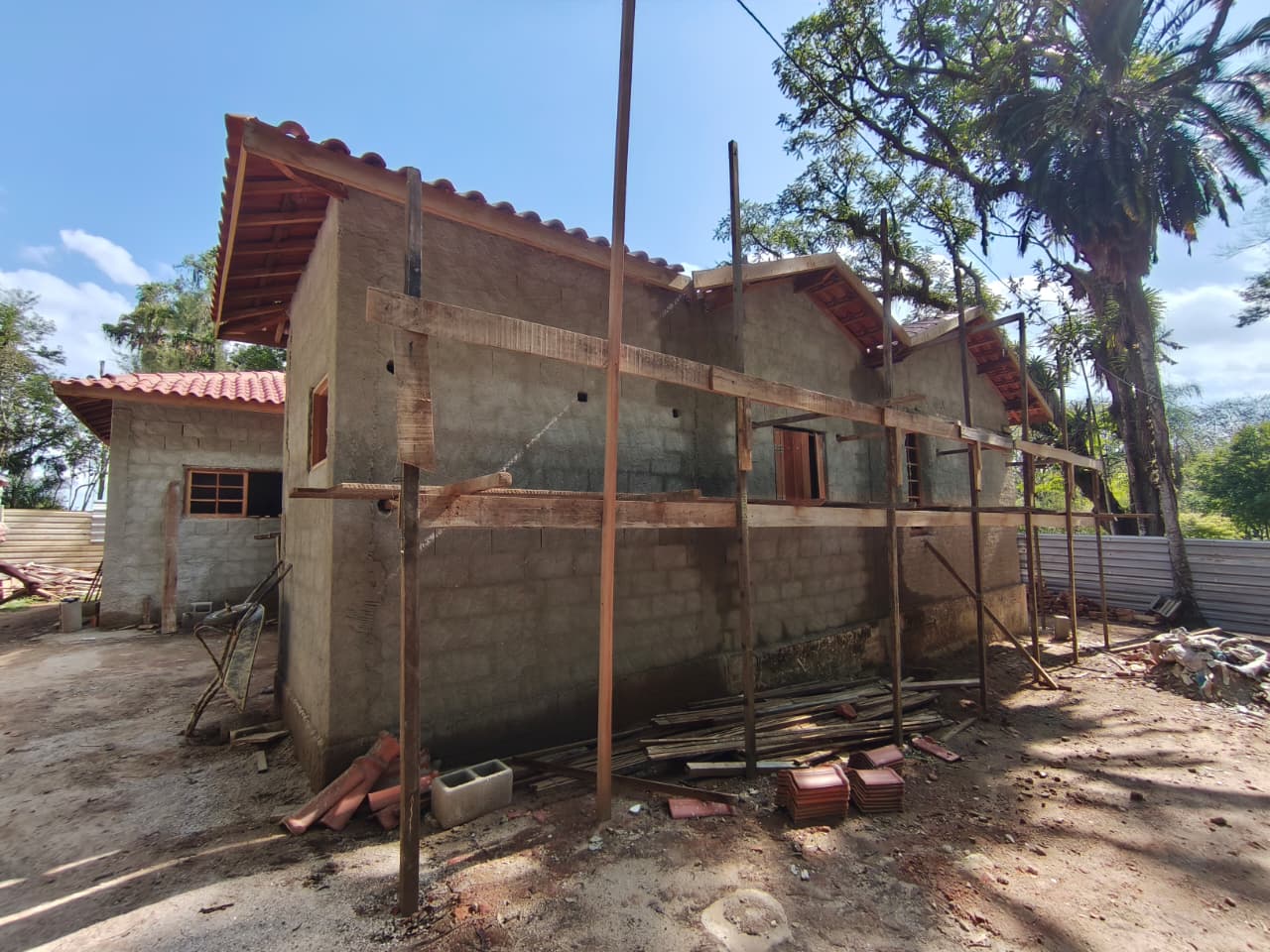 Em breve, o imóvel receberá calhas, rufos e pingadeiras, além do reboco das paredes e finalização da parte hidráulica.