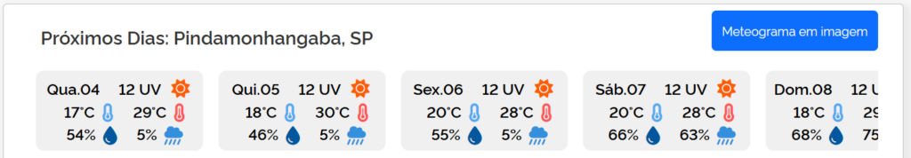 Previsão do tempo para próximos dias: Pindamonhangaba, SP