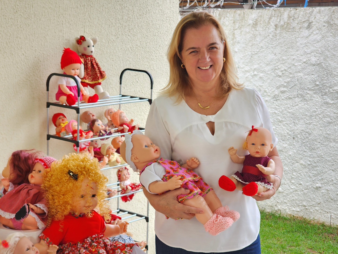 Cada boneca passa por um processo cuidadoso de higienização, consertos e recebe roupinhas exclusivas, confeccionadas com dedicação para serem entregues às crianças em datas especiais, como o Dia das Crianças e o Natal.